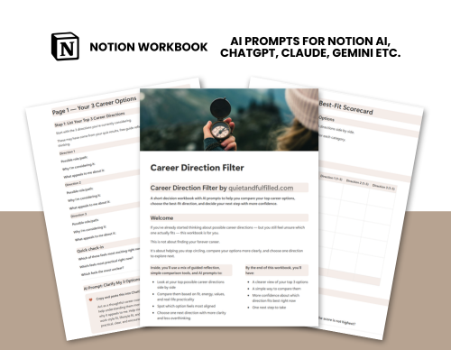 This step-by-step system helps you understand what fits you, explore better career directions, and create a practical next-step plan using worksheets, AI support, and decision tools.